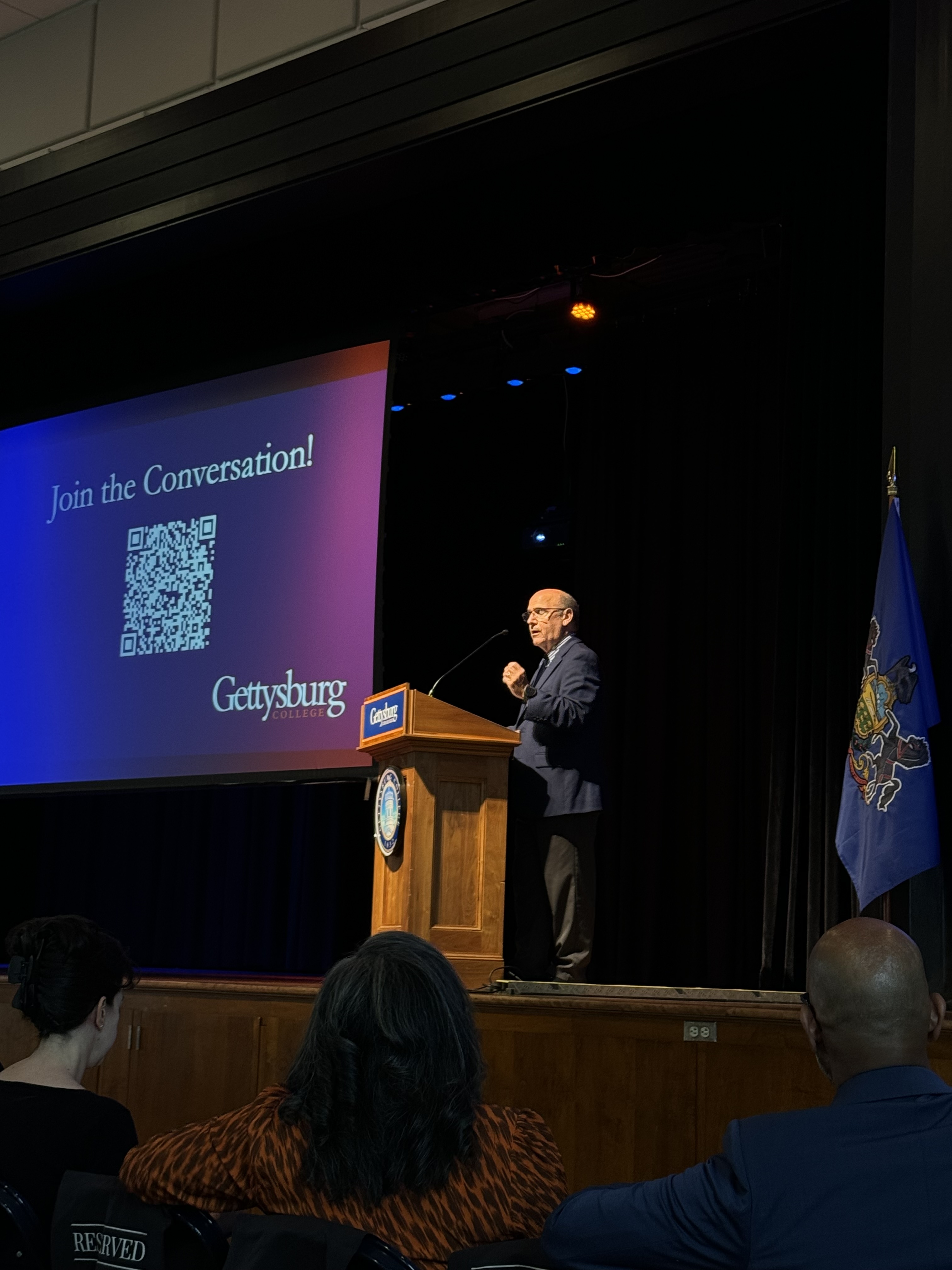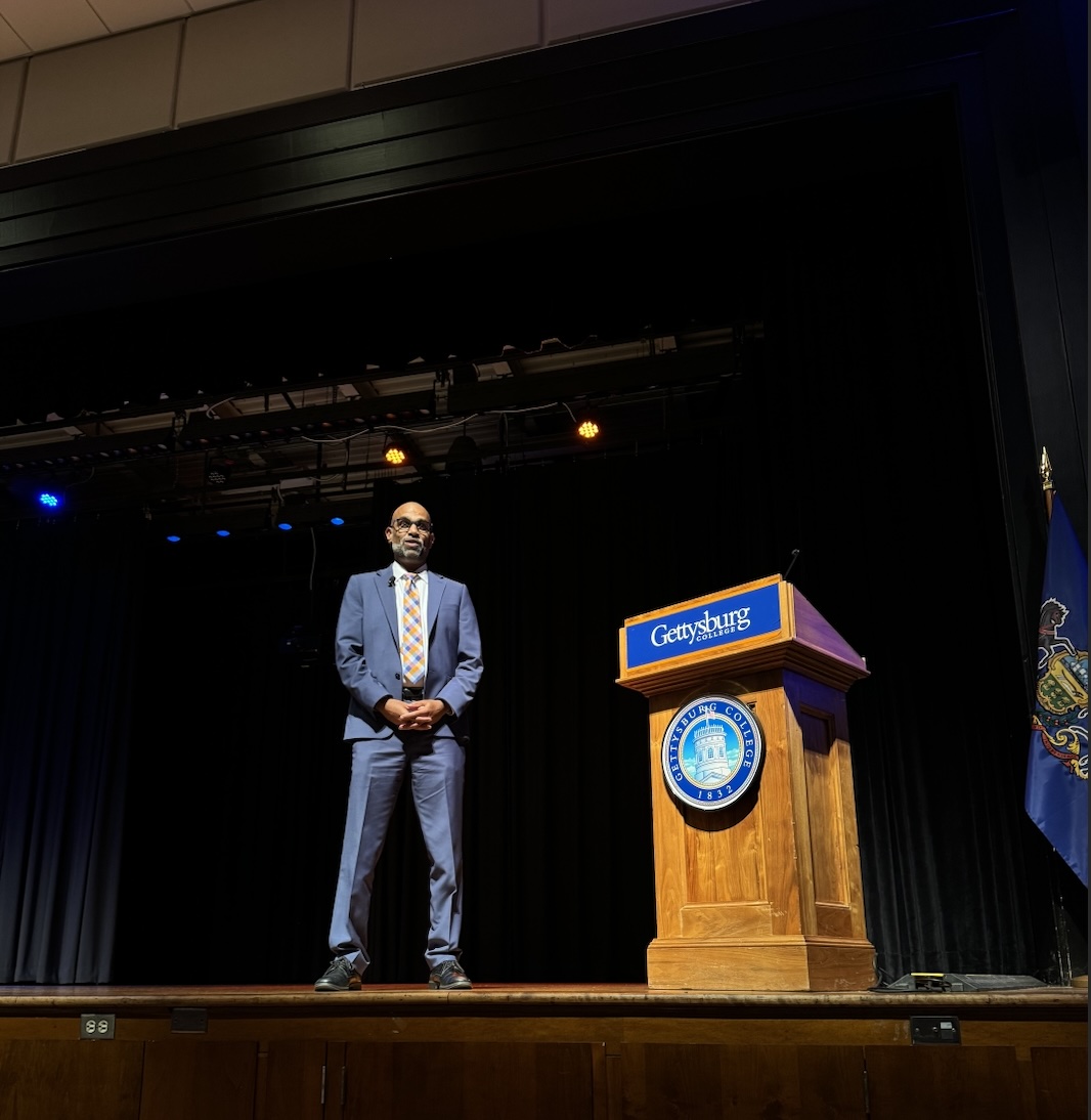 Gettysburg College launched its year-long “Conversations for Change” initiative this fall. Raj Vinnakota, President of Citizens & Scholars, served as the keynote speaker for the initiative’s kickoff. He addressed an audience of over 700 first-year students, emphasizing how civil discourse is essential for a healthy democracy and a crucial skill for success in campus life, the workplace, and our communities. Following his speech, there was a civil discourse exercise involving Raj and the leaders of both the Gettysburg College Republicans and Democrats. The event concluded with a moderated Q&A session with the students.